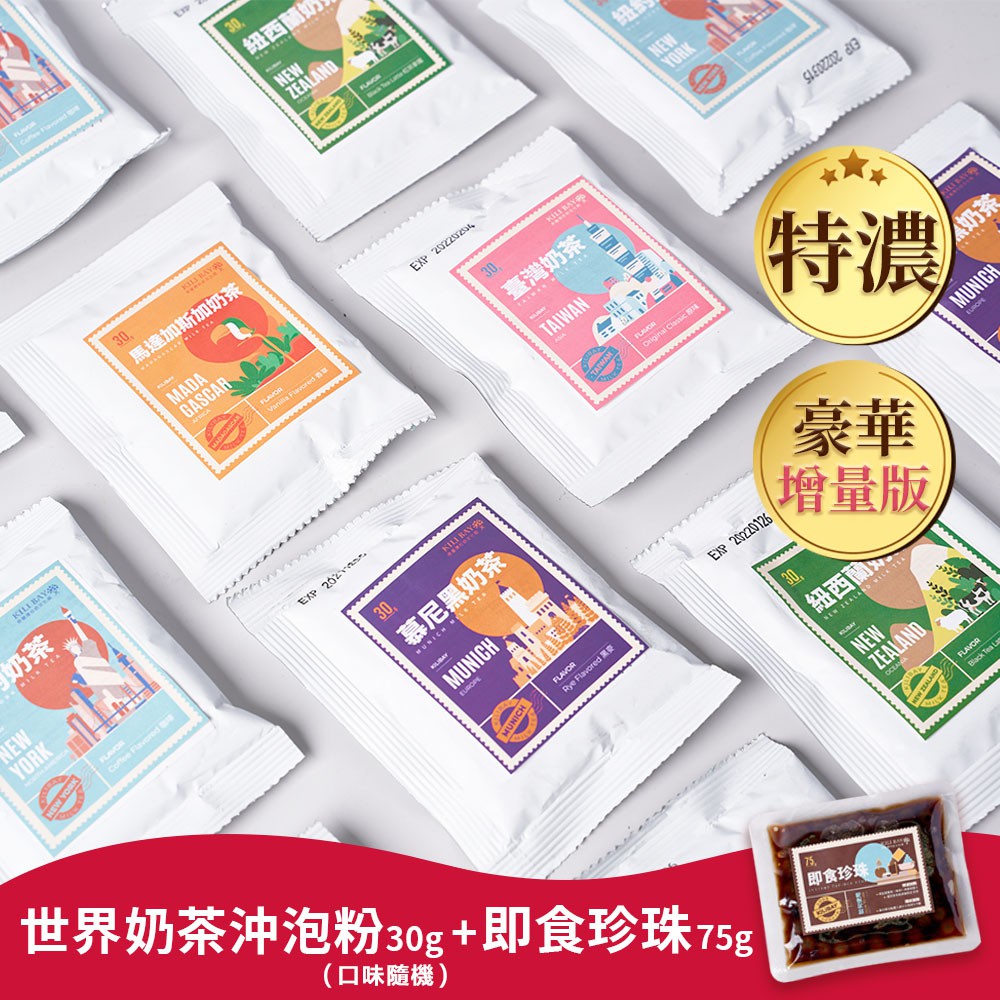 【奇麗灣】世界奶茶沖泡粉x1(30g/口味隨機)+即食珍珠(75gx1)
