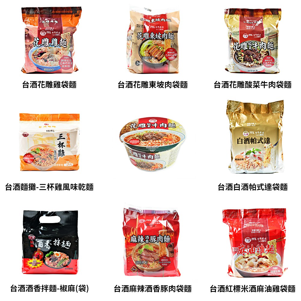 【台酒TTL】台酒泡麵全系列-花雕雞麵/麻油雞麵/酸菜牛肉麵/酒香拌麵/麻辣酒香豚肉麵/三杯雞/酒燉排骨..等(袋裝)