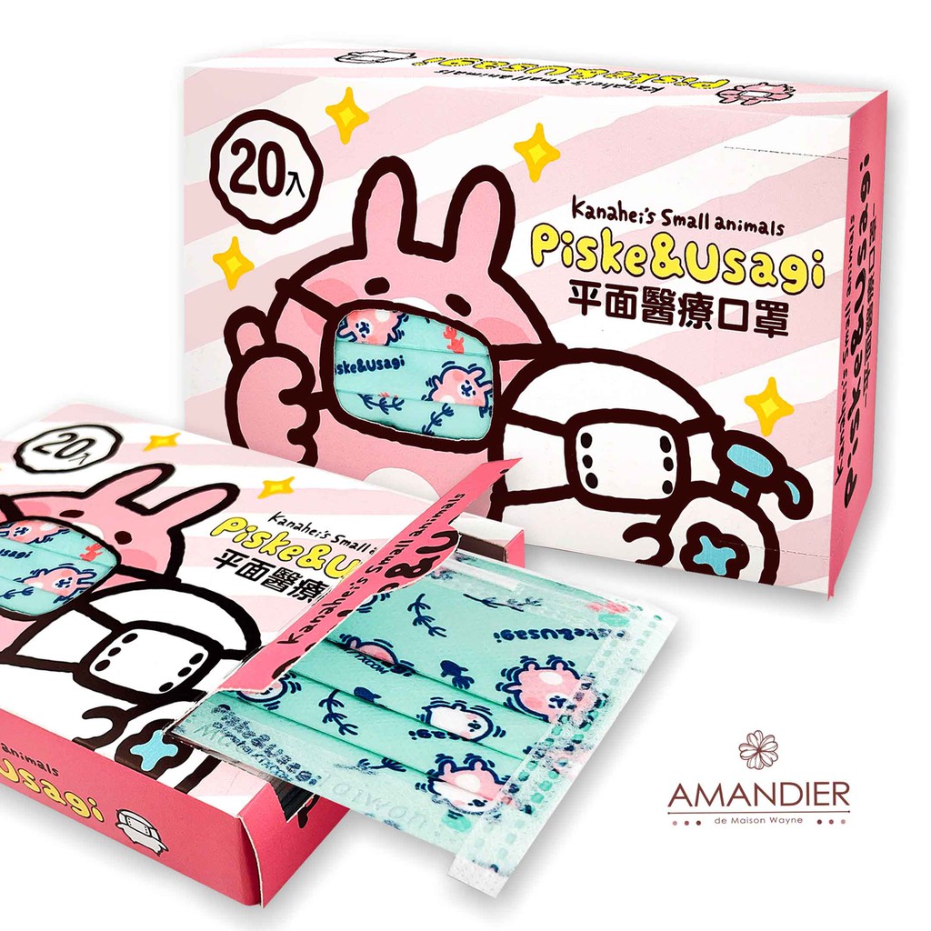 【雅蒙蒂文創烘焙禮品】卡娜赫拉的小動物平面醫用口罩-(藍綠色)